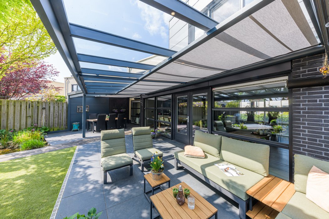Deze glazen wanden zijn onderhoudsarm en bestand tegen windbelasting. Je behoudt het uitzicht op de tuin, zonder in te leveren op beschutting of veiligheid.